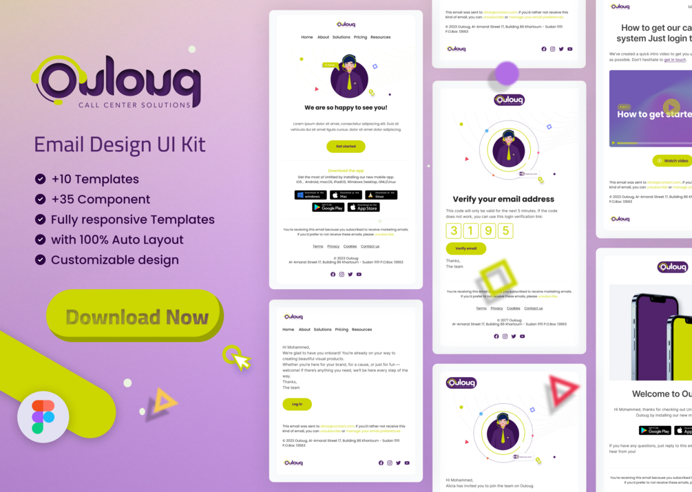 Templates Email design UI Kit +10 Templates +35 Component Fully responsive Templates with 100% Auto LayoutΒ Customizable design